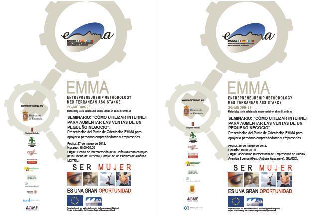 Debido al excelente nivel de asistencia y evaluación que hemos constatado desde Granada Empresas respecto del Seminario que impartimos en Granada el pasado 30 de enero sobre el uso de Internet para aumentar las ventas de una pequeña y mediana empresa, nos complace anunciarte que en el marco de la presentación de los Puntos de Orientación EMMA para el apoyo a personas emprendedoras y empresarias de la provincia de Granada, hemos programado dos Seminarios más a los te invitamos de forma exclusiva a través de esta comunicación: