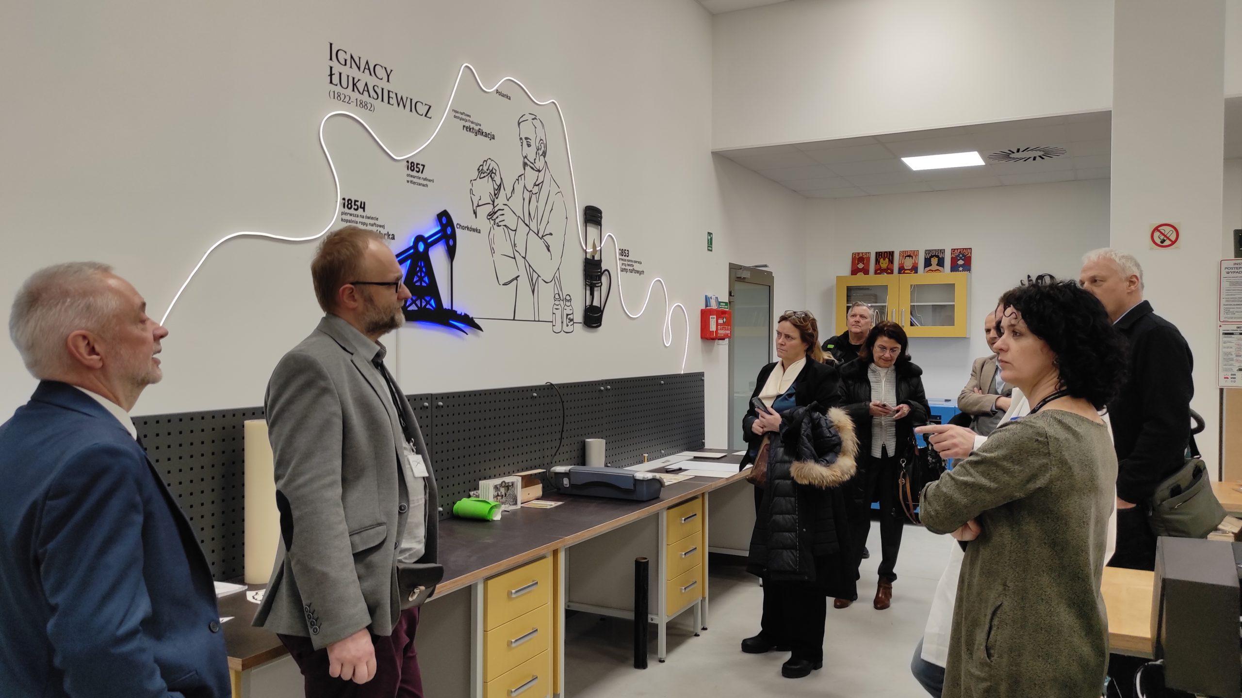 La visita comenzó el pasado 21 de febrero en Rzeszów, iniciándose a primera hora de la mañana con la bienvenida por parte de los representantes de la Agencia de Desarrollo Regional de Rzeszów, los socios polacos del proyecto, con sede en dicha ciudad. A continuación se visitó el Centro de Innovación Podkarpackie, un edificio que integra la ciencia con la empresa y donde se desarrollan proyectos científicos y se apoyan las ideas emprendedoras e innovadoras de sus estudiantes.